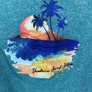 Ventura Surf Shop hoodie by Coastal Classics, size S. Light teal green and white color with beach decal. Finished hem and cuffs. Full hood. Length is 22”, chest is 20” across.