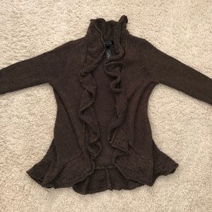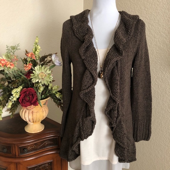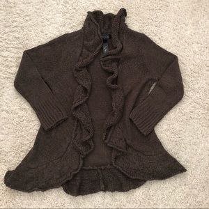 Venue Ruffle Front Ribbon Knit Cardigan Sweater