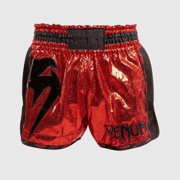Venum Giant Foil Muay Thai Boxing Shorts - Red/Black Metallic Sparkle Glitter