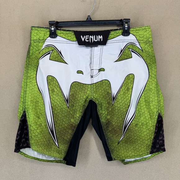Venum MMA Fight Shorts Men's 34 Green Snake Skin Graphic Athletic Training