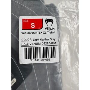 Train or lounge in style with this Venum Men's Vortex Short Sleeve Tee in Light Heather Gray, Size XL, New with Tags. Designed with a clean embroidered Venum logo, this tee offers a sleek athletic look with everyday comfort. Made from soft, breathable fabric, it features a classic crew neckline and relaxed athletic fit, perfect for workouts, casual wear, or layering.