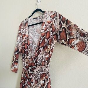 Stylish snake print faux wrap top with long sleeves. Perfect for a chic look.