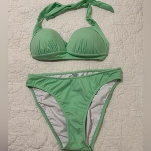 Venus 2 piece bikini lime green push up top bottoms size 10, top “D” NWOT