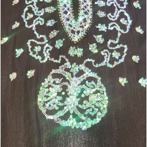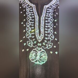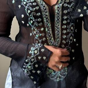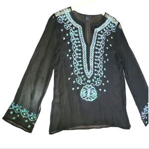 Venus Black Semi Sheer Silk Turquoise Sequin Embroidered Beaded Tunic S