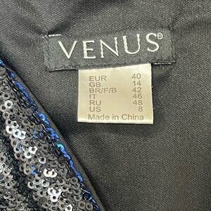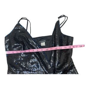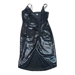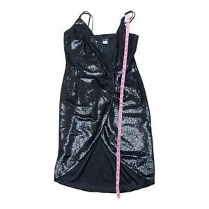Venus Black Sparkly Sequin Wrap Dress Spaghetti Straps Sz 8 Cocktail V Neck EUC