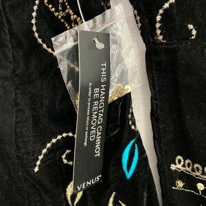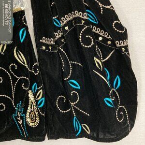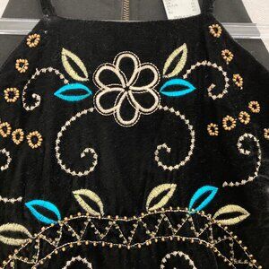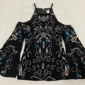 Venus Black Velvet Cold Shoulder Embroidered Flare Sleeve size 2 Boho Whimsigoth