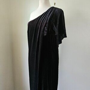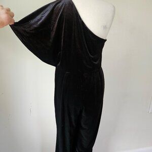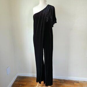 Venus Black Velvet One Shoulder Flutter Sleeve Draped Party Evening Jumpsuit L