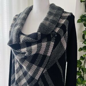 Venus Black & White Knitted Long Cowl Neck Side Button Cardigan Sweater Duster M