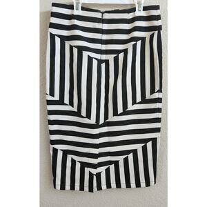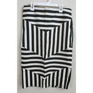 Venus Black White Stripe Pencil Skirt 10 Lightweight Flat Front Back Zip Closure