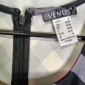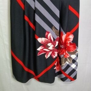 Venus Black and Red Plaid Floral Fit and Flare Dress Medium