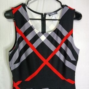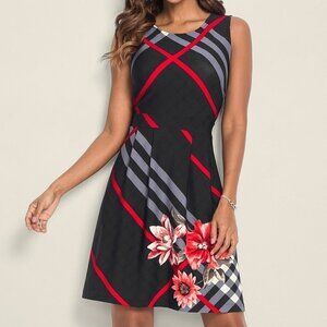Venus Fit & Flare Dress Black & Red Plaid Floral Design Sleeveless Size M