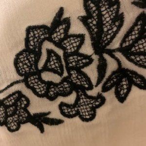 Gorgeous floral embroidered bohemian top, long flowy arms, cute empire waist cut. great addition to any closet! very well made. venus brand. size womens Large. white with black embroidery. excellent condition no snags or loose stitches 🌸😁