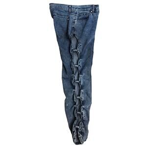 Elevate your denim collection with these one-of-a-kind acid-wash jeans by Venus. The loose fit offers maximum comfort, while the cropped cut-out along the outside of the legs creates a charming bow tie silhouette. These jeans are truly distinct and will definitely spark conversation wherever you go.
