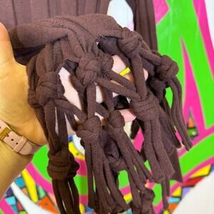Venus, Brown Turtleneck Sweater with Braided Fringe. Size Medium. Excellent cond