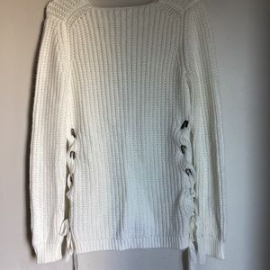 Venus Chunky Knit Sweater Vneck Tie Sides Lace Up Small Ivory