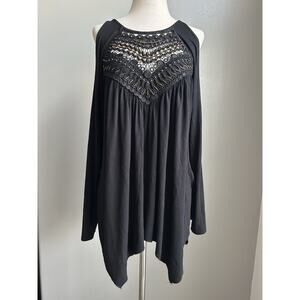 Gorgeous beaded lace cold shoulder flowy boho top by Venus. Long tunic top with handkerchief hem. In perfect condition- no flaws. Nice soft rayon material