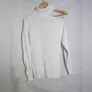 Venus Cold Shoulder M Women's White Turtleneck Sweater