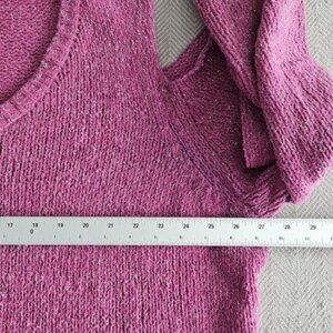 The relaxed fit and chunky knit texture create a cozy feel, while the sophisticated purple hue and strategic slit neckline add a touch of glamour. Perfect for various occasions, this versatile piece can be worn for casual outings, travel, or cocktail parties. Crafted from a blend of polyamide, polyester, and metallic threads, this tight-knit sweater ensures durability and a gentle stretch for all-day comfort. Its fitted long sleeves and V-neckline complement the silhouette, making it a stylish choice for the fall and winter seasons.
