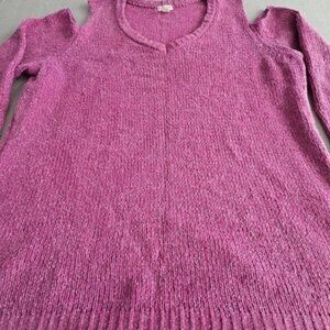 Venus Cold Shoulder Sweater Women's Size 1x Purple Metallic Thread Chunky Y2K