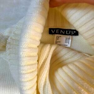 Venus Cold Shoulder Turtleneck Sweater Womens Bell Sleeves w/Fringe Ivory Size S