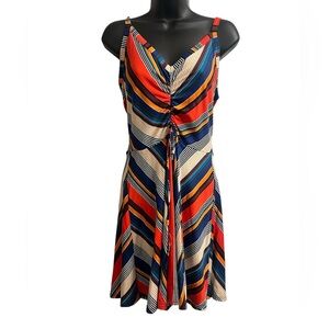 Venus Colorful Striped Sleeveless Adjustable Straps Dress Sz M