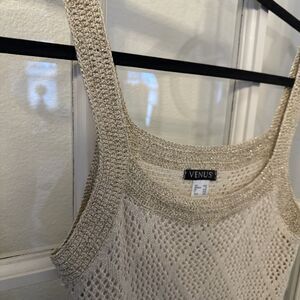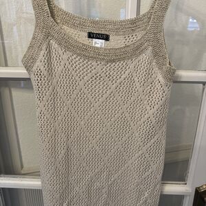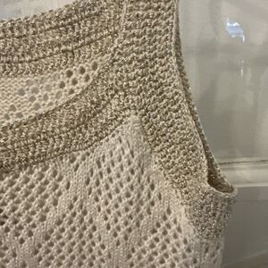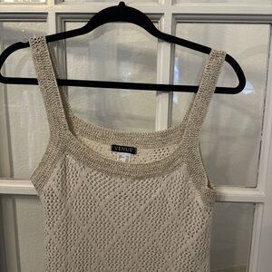 Venus Cream Gold Sleeveless Crochet Knit Sweater Dress Lace Detail Womens Medium
