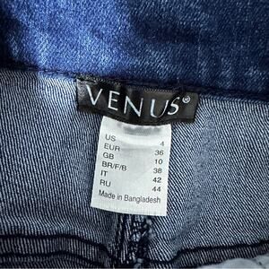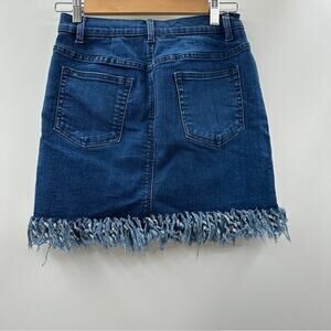 Venus Dark Wash Raw Fringe Hem High Waist A-Line Denim Mini Skirt Size 4