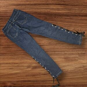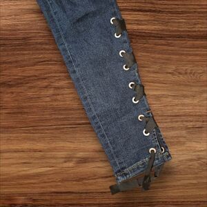 Biker or club..these will get some attention. Sexy lace up.legs. Great with heels or even booties. Good overall condition Dark Wash