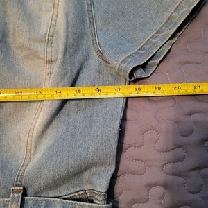 Stylish denim romper with short sleeves and a belt. Perfect for casual outings. See pictures for measurements.