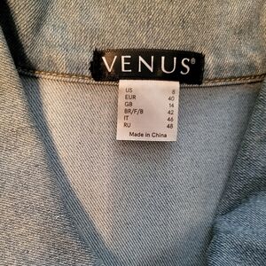 Venus Denim Short Sleeve Romper with Zip Front & Tie Waist, Size 8, Like New