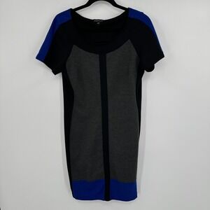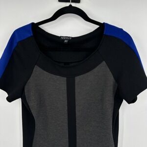 Venus Dress Womens Medium Black Gray Blue Colorblock Stretch Sheath Scoop Neck