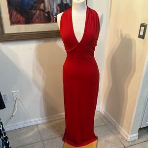 Turn heads with this stunning red halter neck dress. Perfect for any occasion, this dress offers a flattering fit and bold color. Elevate your wardrobe with this must-have piece. Sexy and classy. Perfect condition!