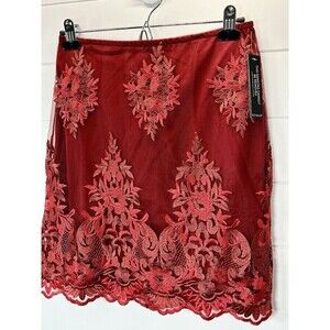 Venus Embroidered Lace Red Mini Lined Skirt Romantic Goth Fairy Sz 8