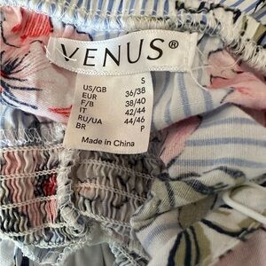 A Spring and Summer perfect any occasion dress! This blue and white striped dress by Venus features contrasting bright pink florals throughout. It’s a triangular shaped high neck halter top with spaghetti straps; adjustable straps; fully lined; bottom slip with attached petticoat at the bottom hem for that very feminine fluffed skirt that extends a retro vibe to this modern preppy dress. Perfect to pair with a gorgeous pair of red or hot pink stilettos 🔥