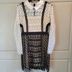 Venus Full Lace Side Cut outs Long Sleeve Collared Dress