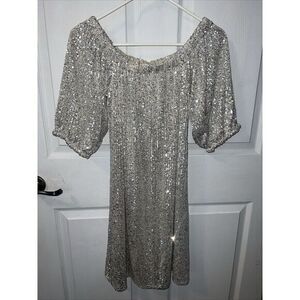 Venus Golden Sequined Off The Shoulder Dress Size Small-Great Holiday NYE Dress