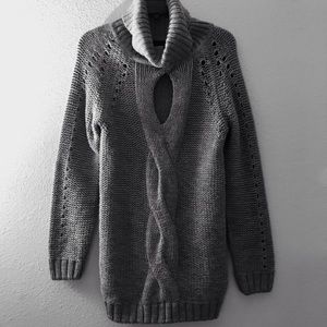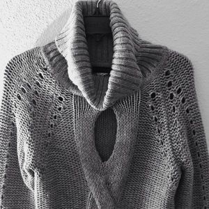 Venus Gray Keyhole Cut Out Long Sleeve Cowl Neck Turtleneck Sweater Size Small