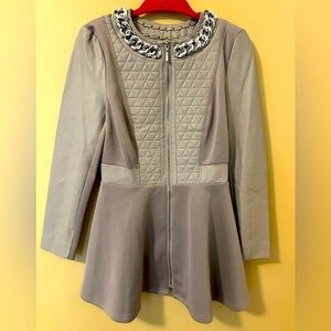 Venus Grey Faux Quilted Leather & Fabric Jacket Coat with front Zipper size 6