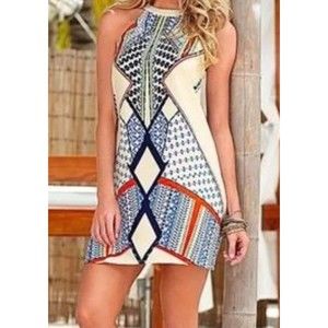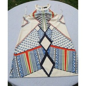 Venus Halter Mini Dress Womens Small Cream Multicolored Geometric Sleeveless.