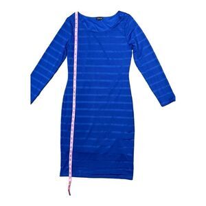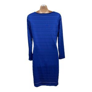 Venus High Neck Cobalt Blue Dress Sz Large Bodycon Stretch Striped Long Sleeve