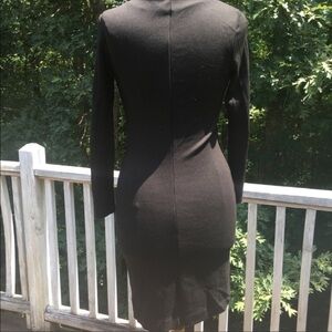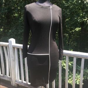 Long sleeve black dress with white piping in a 1960's inspired geometric patte RN. *All measurements are approximate* Length: 33” Armpit to Armpit: 13.5 waits 14.5 hips 15” laying flat Sleeve Length: 22” pull over on/off stretchy and curve loving.