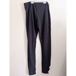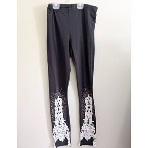 Venus Lace Applique Leggings. Black leggings with a lace applique shin design and rhinestone embellishment.