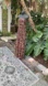 The strapless maxi dress starts with an elastic bodice that was stretch easily to 23 inches. The fabric is a soft rayon knit with a realistic leopard design. Also elastic at the waist with plenty of stretch. Maxi excellent condition.