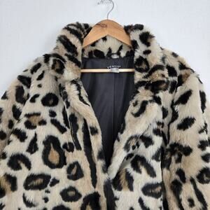 Venus Leopard Faux Fur Teddy Jacket 2X Animal Print Long Sleeve Pockets Lined