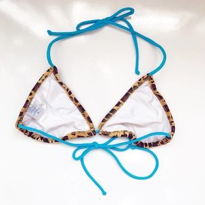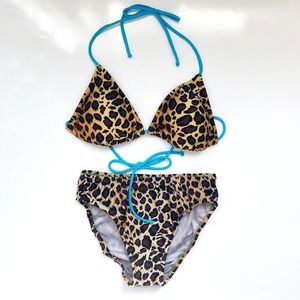 Venus Leopard Print High Waist String Bikini Set Turquoise Straps Size Small