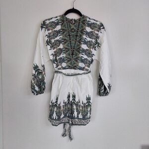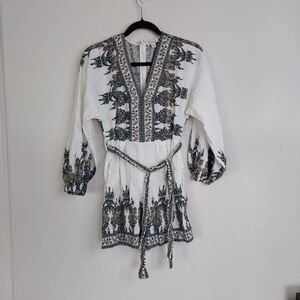 Venus Linen Blend Tie-Waist Romper Size 2. Pre-owned
