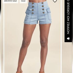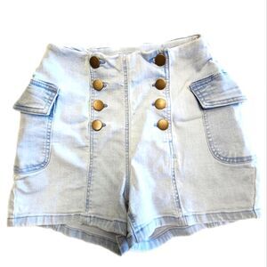 Venus Marin Cargo Shorts, Light Blue Wash, Double Button Fly, High Waist, 2