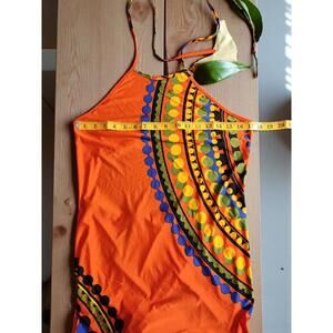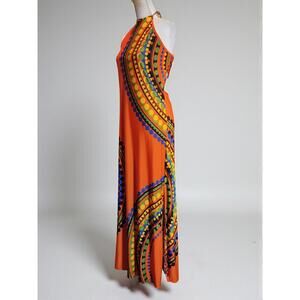 Venus Medium Size Orange Maxi Dress with Colorful Pattern