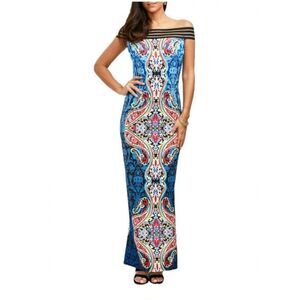 Excellent pre-owned condition. No flaws to note. Women's Venus Mesh Detail Off Shoulder Bodycon Maxi Dress Medium.