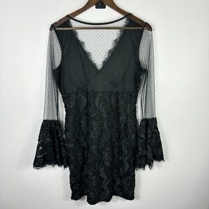 Venus Mini Dress Women L Bell Sleeve Sheer Lace Black Goth Boho Whimsigoth
